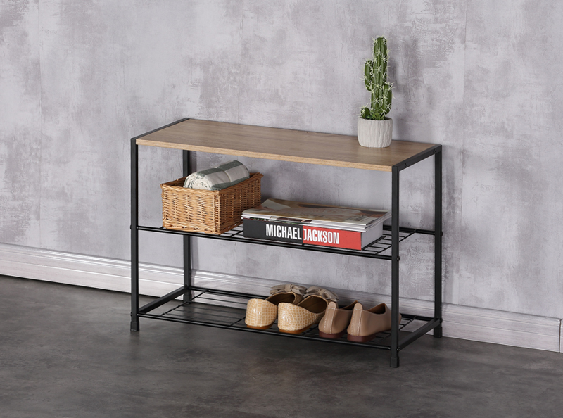 ◎Black Metal Shoe Rack with Wooden Top Plate