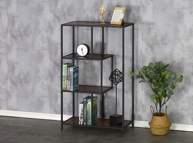 Made of Particle board and Steel tube with a black finish metal frame. Designed with 3 fixed shelves