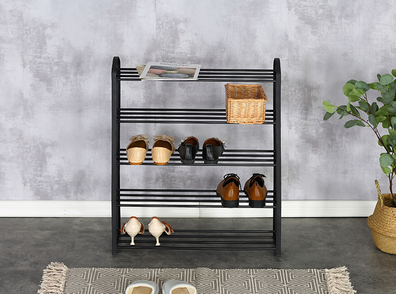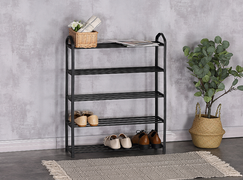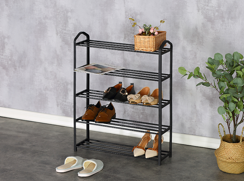 Name:SHOE RACK-XJ53KTurnover time:2022/10/29 15:07:40 Product Name ◎Shoe Rack ◎5-Tier Organizer for Closet, Bathroom, Entryway ◎Shoe Shelf Holds 15 Pair Sneakers, Heels, Boots Product Parameters Model:XJ53K Product Size:63*20*79cm Material:(1)Steel tube with electric coating in black (2)Plastic connector in black Shape:Rectangular |