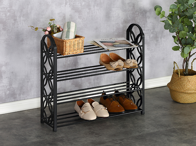 Name:SHOE RACK-XJ43C2Turnover time:2022/10/29 15:58:37 Product Name ◎Shoe Rack ◎4-Tier Organizer for Closet, Bathroom, Entryway ◎Shoe Shelf Holds 12 Pair Sneakers, Heels, Boots Product Parameters Model:XJ43C2 Product Size:62.5*20*60cm Material:(1)Steel tube with electric coating in black (2)Plastic connector in black Shape:Rectangular |
