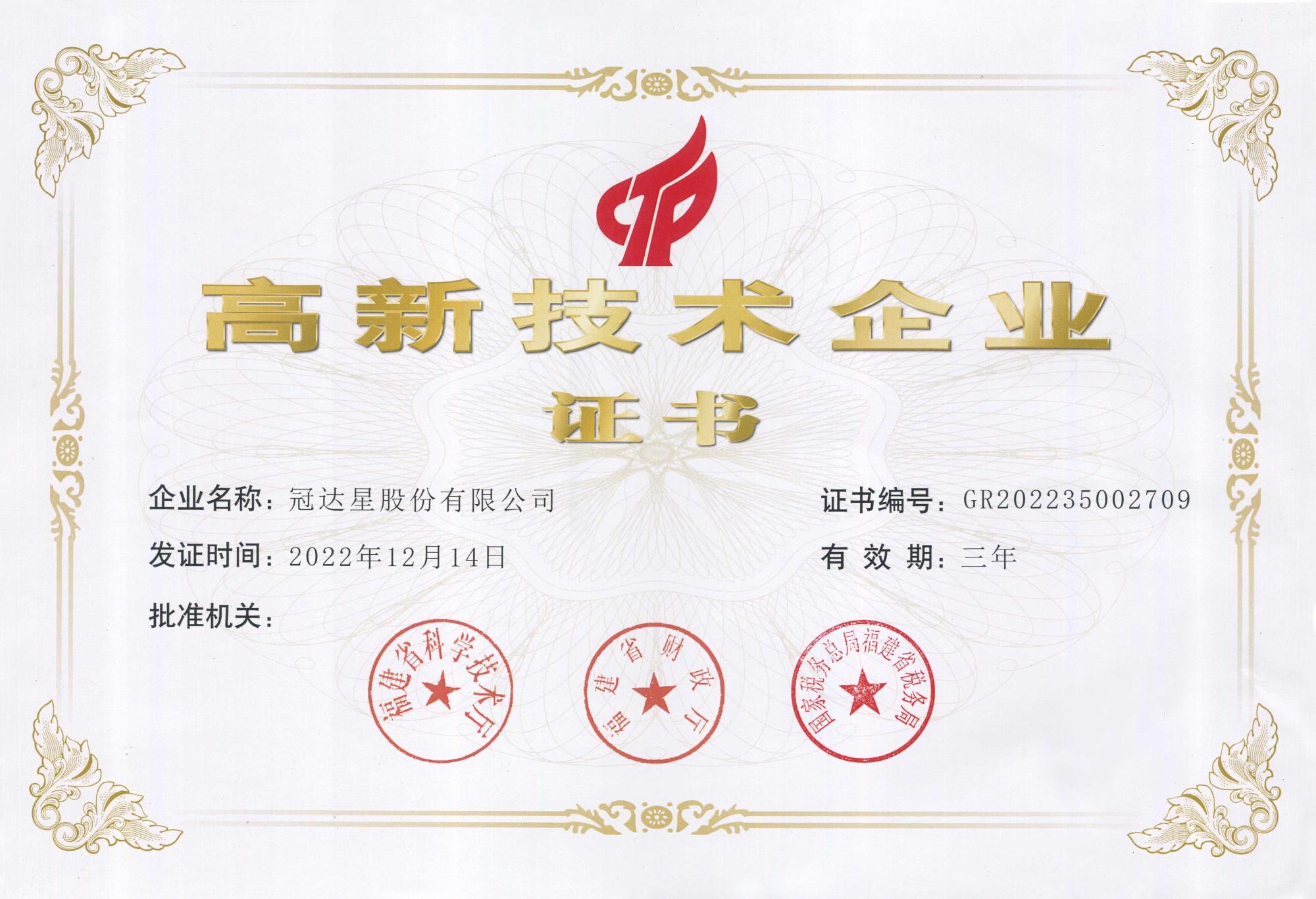 喜讯 | 冠达星荣获“高新技术企业”称号